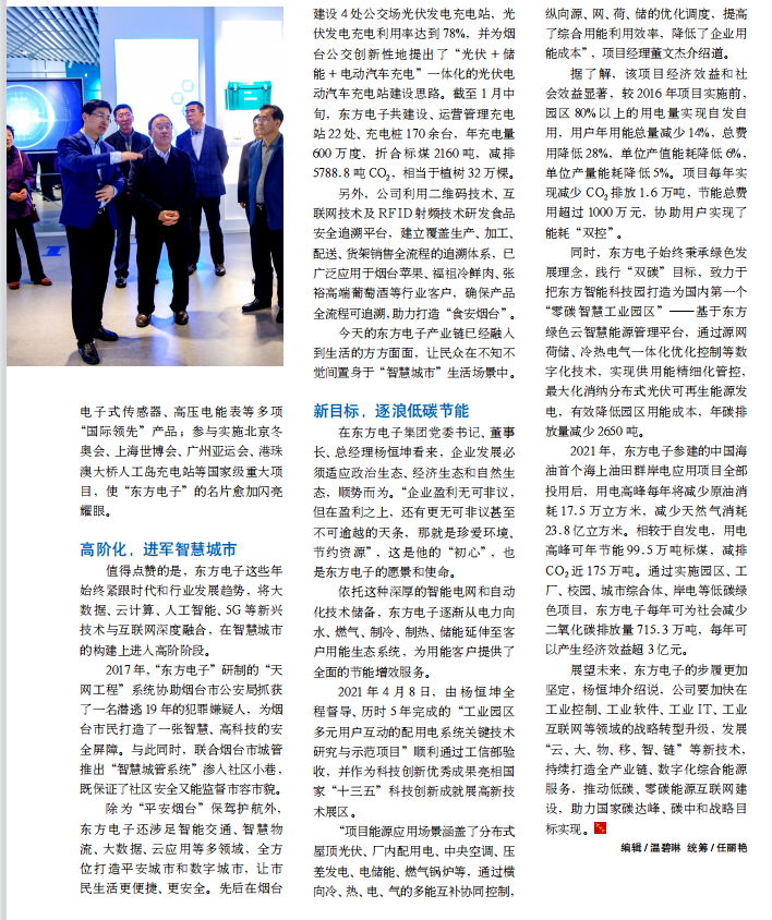 时,济南益佳农服航空科技有限公司始终秉承绿色发展理念,践行“双碳”目标,致力于把东方智能科技园打造为国内第一个“零碳智慧工业园区”——基于东方绿色云智慧能源管理平台,通过源网荷储、冷热电气一体化优化控制等数字化技术,实现供用能精细化管控,最大化消纳分布式光伏可再生能源发电,有效降低园区用能成本,年碳排放量减少 2650 吨。